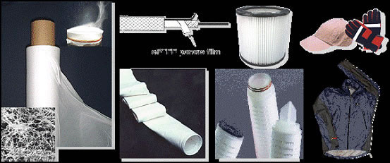 A membrana porosa de PTFE (membrana porosa de politetrafluoretileno), feita de 100% PTFE expandido, apresenta milhões de microporos, os nós e fibras ligadas através de um processo especial. A membrana microporosa oferece as melhores propriedades funcionais que combinam filtração de elevada eficiência e como agente separador. Além disso, também apresenta outras qualidades excelentes, incluindo a resistência química, elevada permeabilidade ao ar e vapor, à prova de água e apresenta propriedades de isolante térmico. Esta membrana porosa de PTFE está preparada para operar num espectro de temperaturas amplo que vai dos -400°F aos 500°F (-200°C até 260°C). Numa frase, esta membrana microporosa pode ser usada em muitas indústrias onde os outros materiais não podem competir.